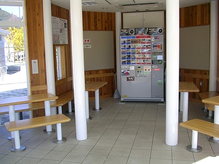 休憩所には軽食類の自販機が据えられている。テーブル類もあり、閉館後に軽い食事を摂るのも可能だ。