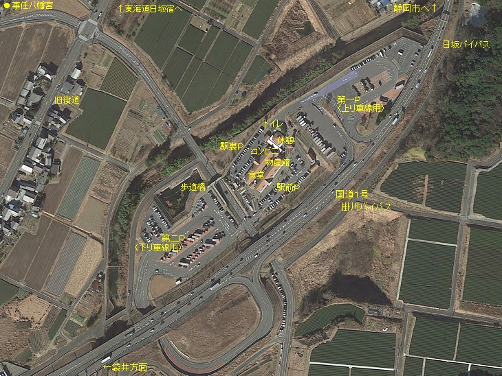 交通量の多い国道一号バイパス沿い。全体に騒々しくてP泊向きではないが、施設の充実した人気の繁盛駅。