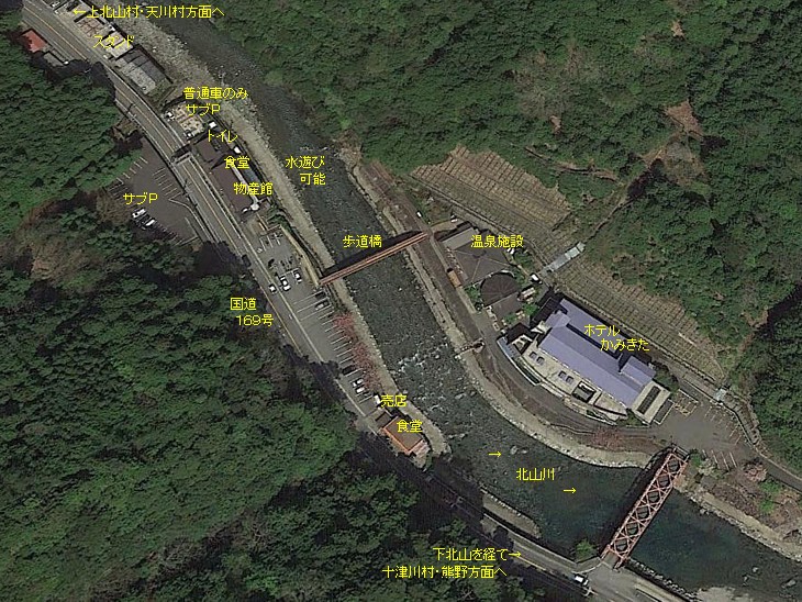 奈良県の東南端、最も山奥の道の駅。和歌山県境まで約25km、北山川の対岸には立ち寄り温泉がある。