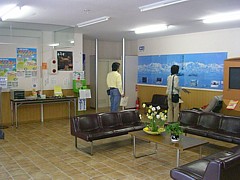 病院の待合室みたいな雰囲気の広い休憩・情報コーナーあり。管理事務所に面しているため飲食は摂りにくいのは難点。 | |