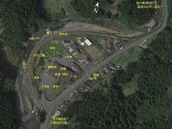 川原小学校(平成6年廃校)を利用した道の駅。以前の宿泊施設やサウナは廃止、現在の魅力は清流のみ。