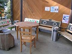 情報コーナーを兼ねた狭いスペースがあるが、とても落ち着けるスペースではない。「ネット接続機能あり」の詳細は不明。 |