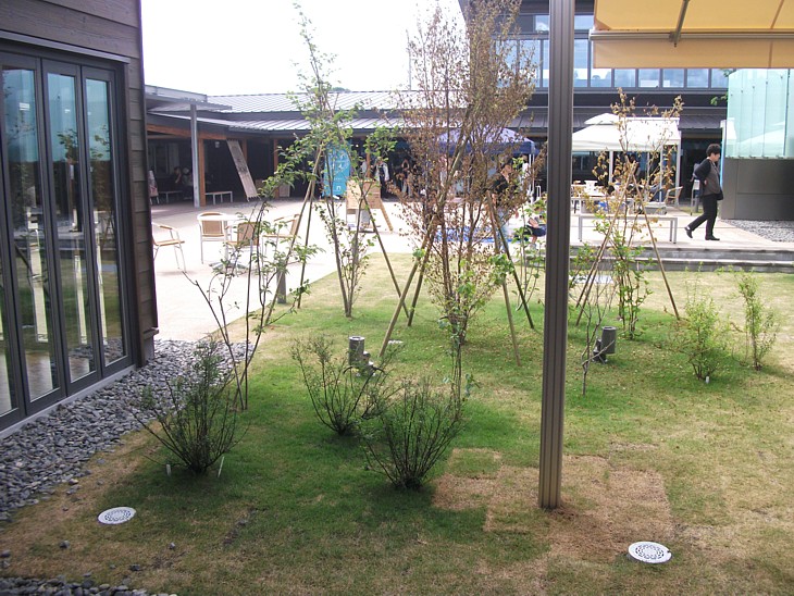 中庭のスナップ。良い雰囲気なのだが狭いのが難点だ。芝生にテーブル席でも置ければ楽しめると思う。