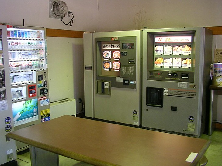 麺類やホットドッグなどの自動販売機が目を惹く。このタイプは好きじゃないが便利なのは確かだ。