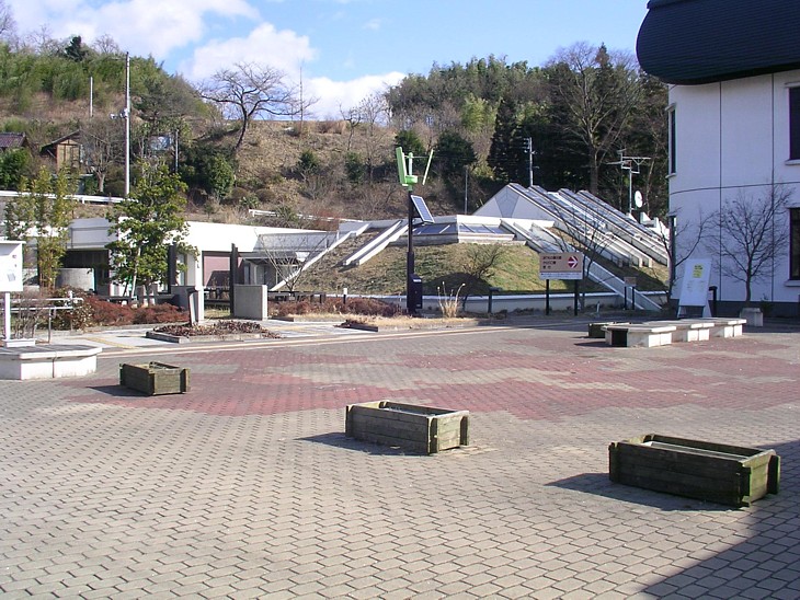 「シルクピア」と「織物展示館」周辺にはフリースペースがあり暖かな季節は休憩に利用できる。
