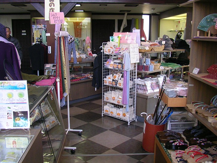 片隅には絹の素材と加工品を扱うコーナーもある。商品の種類が中途半端で購買意欲が沸かない。