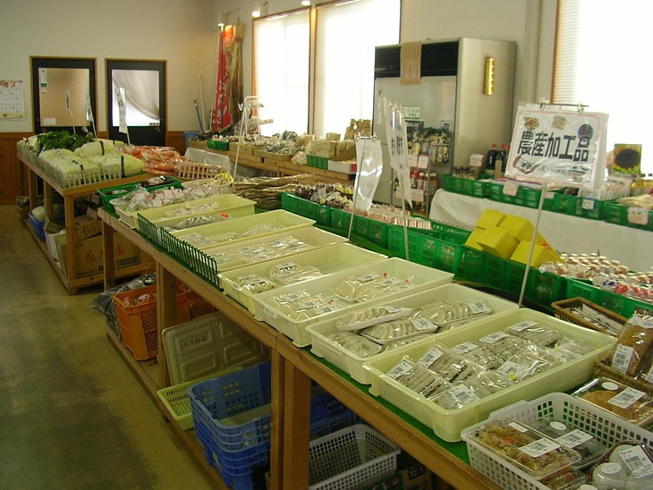 餅類など米加工品の種類も多い。作りたての柔らかな餅菓子も豊富に並んで食欲をそそる。