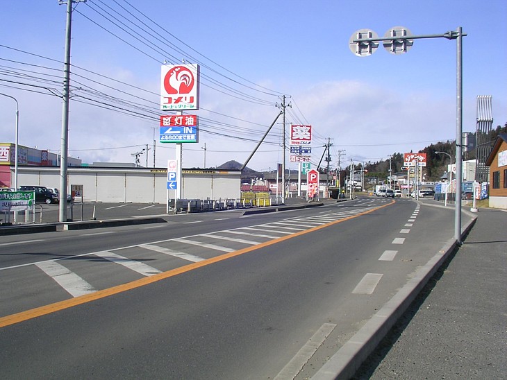 すぐ前にコメリH&G、隣にドラッグ(現在はラーメン店)、更にカインズとダイユーエイト、中型店が並ぶ。