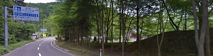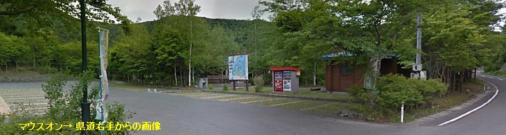 公称は大型車5台+普通車50台、静かな林間の駐車場で観光シーズンにも不足しない、と思う。 | ||