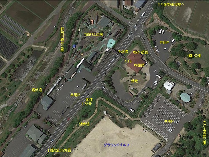 シルクと歴史ロマンに彩られた町・加悦の高台に建つ道の駅。運動公園やSL公園を併設している。