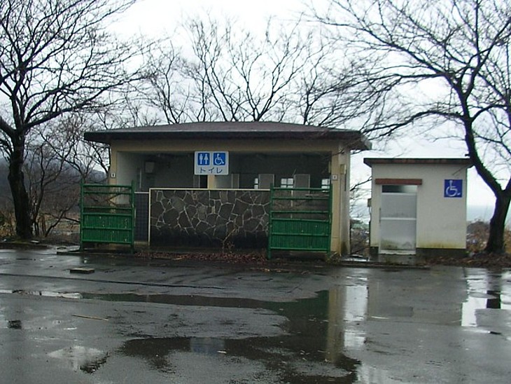 休憩所右手の24時間トイレと身障者用別棟トイレ。画像を見ればこの駅のレベルが想像できると思う。
