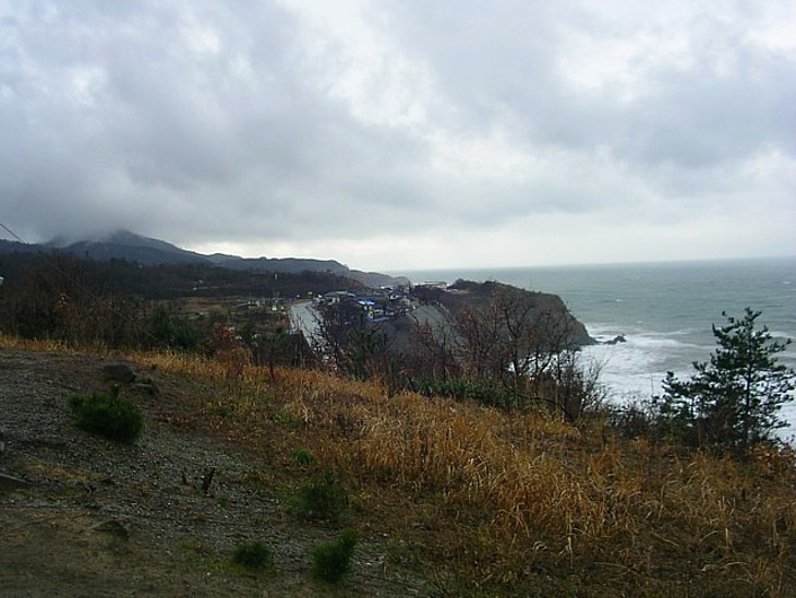 海側からの展望が唯一の取り柄。南西に向かう国道8号と、左に見えるのは米山(越後富士)か。