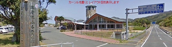 9〜18時、鮮魚や海産物の加工品・手延べうどん・椿油などがメインの地場産品。漁港には活魚センターもある。 |
