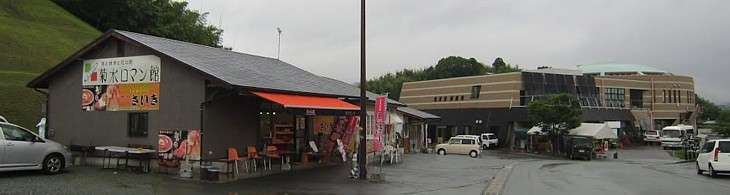 物産コーナーなどに多少のスペースあり。閉館後は大型車P横の緑地に休憩棟・四阿などあり。 |