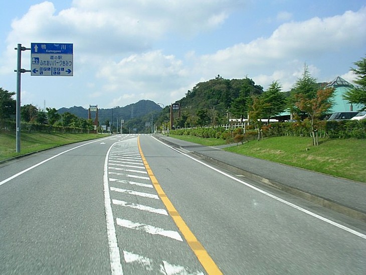 房総スカイラインから700m、空色の屋根が駅。駐車場は右側だが、左のダム記念館も利用できる。