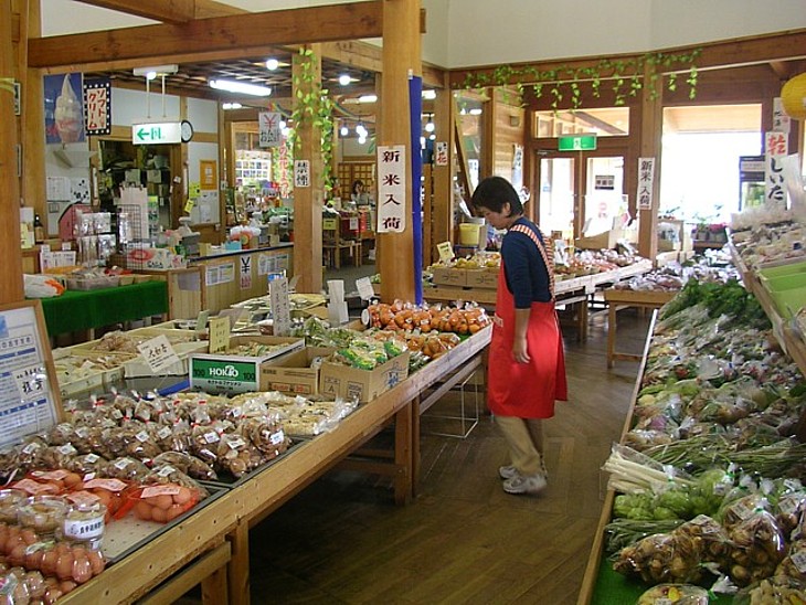 物産館の商品はかなり豊富で農産物や加工品の選択肢も多い。陳列も素朴で好感が持てる売場だ。