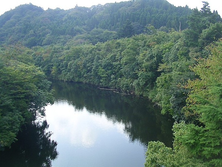 姿美寿橋から右手、上流側を撮影。笹川は500m上流で県道方向に大きくカーブしている。