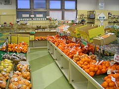 8時半〜18時(11月〜2月は17時まで)、柿や蜜柑など季節の果物・花鉢・ゴマ豆腐・蒟蒻など地場産品が豊富に並んでいる。 | |