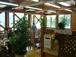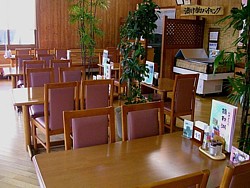 ● 食事処が軽食の機能を兼ねている。山ぶどうジュース(350円)や湯田牛乳ソフト(200〜300円)が人気。 | |