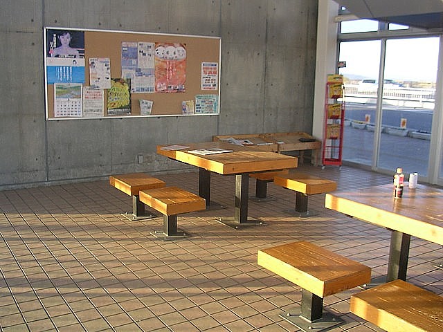 コンクリートの壁が寒々とした雰囲気の休憩室。プロドライバーの利用も多く、家族連れは使いにくい。