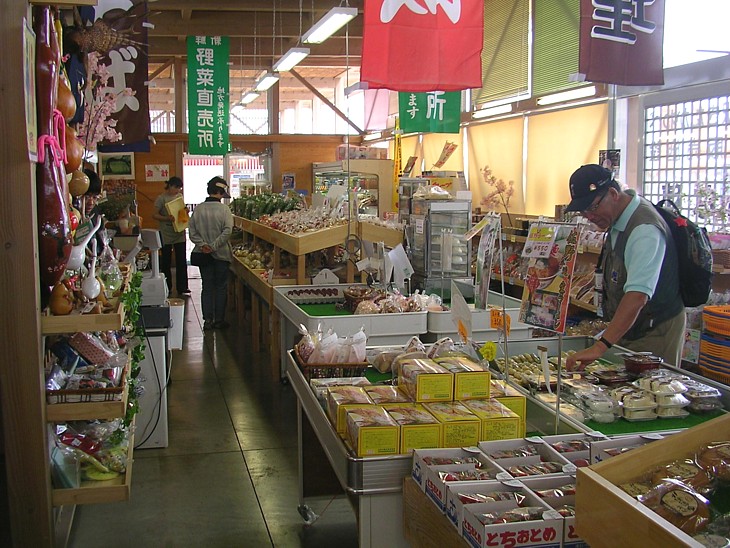 売店のメインは野菜類、豊富で値段も安い。秋には地元産コシヒカリの新米も豊富に並ぶが、値段は高め。