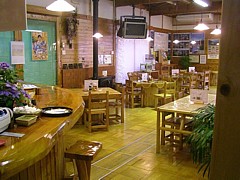 9時〜17時(食事は10時〜)、広くはないが天然木を豊富に使った雰囲気は悪くない。しゃれた喫茶店風の店作りだ。 | |