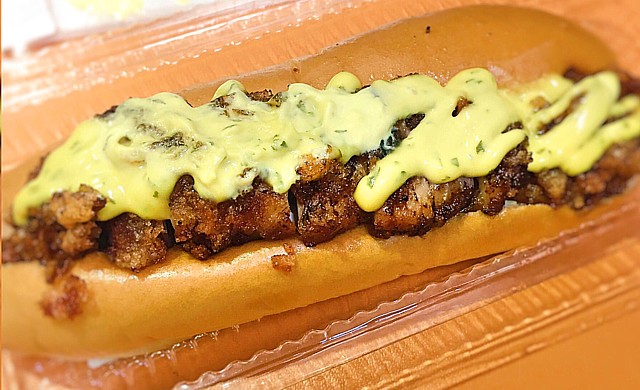 春先にはヤリイカを丸々一匹使った20〜30ヶ限定のヤリイカドッグ(350円)の人気が高い。狙い目! | |