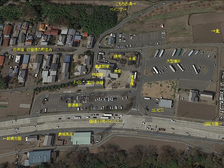 すぐ裏には旧三国街道白井宿の街並みが残る。近くに立ち寄り湯もある、設備の整った人気の高い駅。