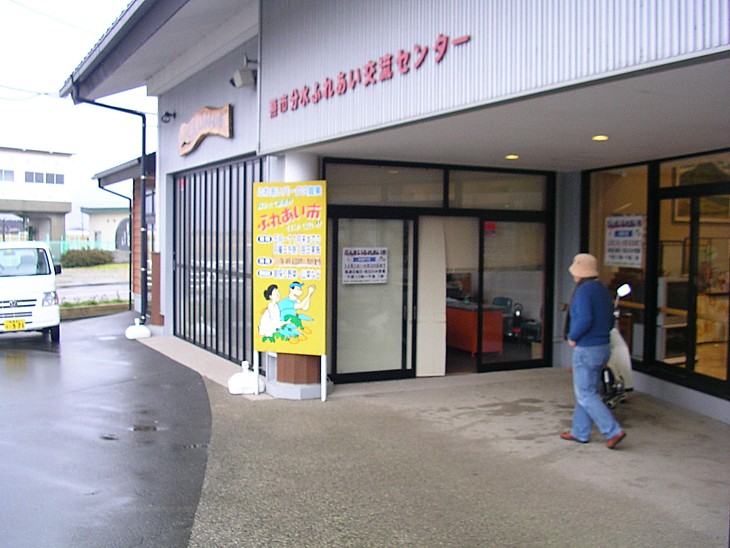 農産物の直売所の駐車場側出入り口。駅舎の休憩コーナー側からの通路からも入れる。
