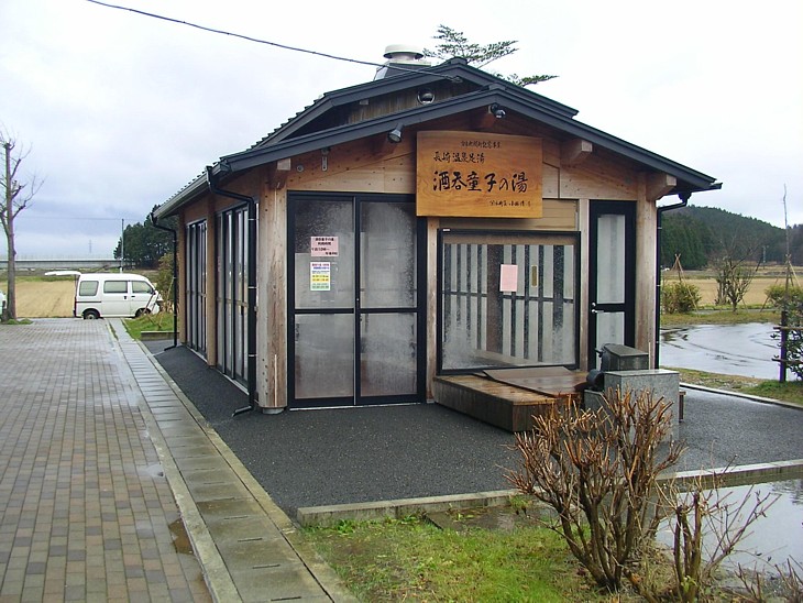 駅舎裏の足湯「酒呑童子の湯」は室内タイプで10時〜21時、「てまりの湯」から引き湯している。