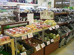 ● 1km東の市民市場(地図)なら数店舗が並ぶ鮮魚店をはじめ地場産品が豊富に揃う「朝市」の雰囲気。惣菜や弁当もあるよ。
