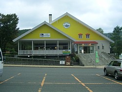 ● 敷地左がレストランで営業は11〜17時(冬は短縮あり)。客席に薪ストーブのある、小さな駅の割りには大きな食堂だ。 | |