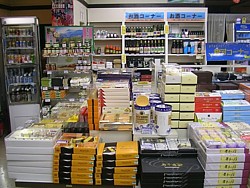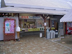 ● 駅の営業時間中は物販棟左横に軽食コーナーが開く。一般的なソフトやスナック類の他に餅や麺類(300円程度〜)も立食で | |