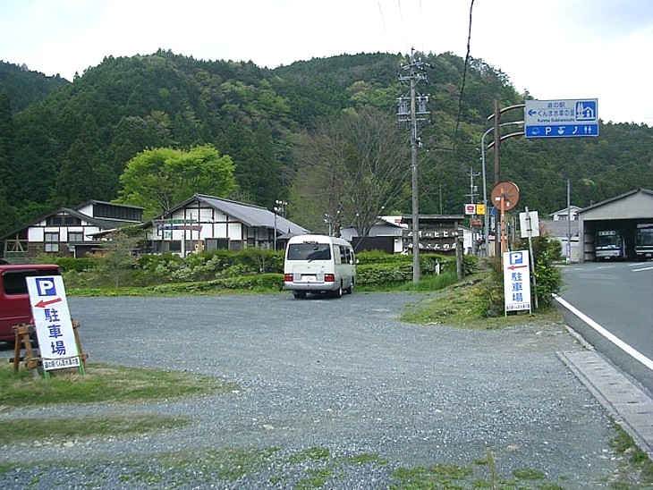 駅舎の前は狭いため混んでいるとUターンに苦労する場合もある。手前左側のサブPに停める方が安心だ。