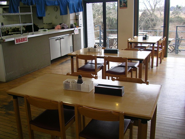 食事処は木床がソフトで感触が良い。調理は地元の主婦グループ、地元の食材を主に利用している。