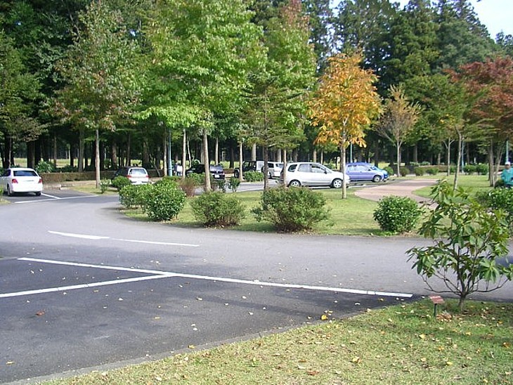 駅舎側の駐車場は芝生と植え込みで区分され、品の良いオートキャンプ場の雰囲気がある。
