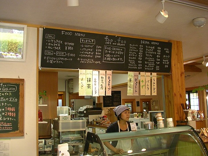 軽食を兼ねた食事処のカウンター。手作りサンドイッチや飲み物のメニューはかなり多彩。