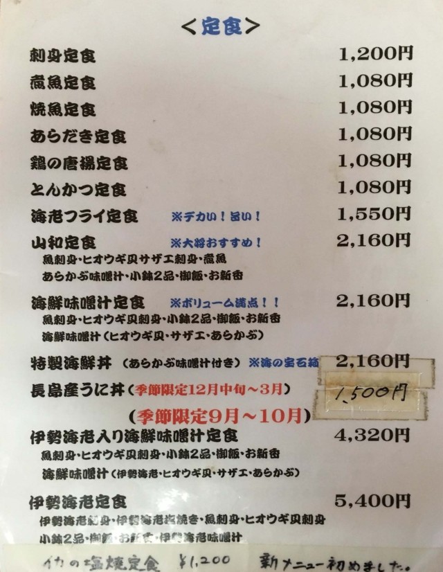 食堂の機能なしだが、国道の筋向いに海鮮料理めいんの食堂が2軒ある。どちらを選んでも概ね満足できる。 | ||