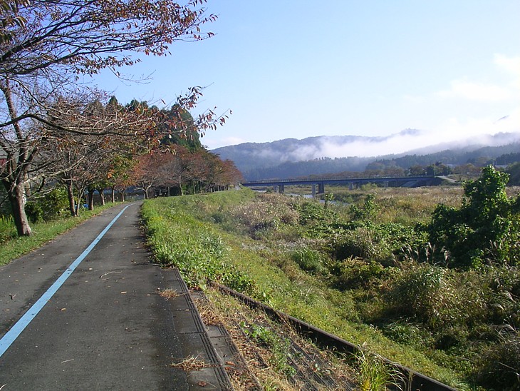 駅舎の裏を流れる安曇川沿いに遊歩道が続く。すぐ先の橋まで歩けば水遊びができる平地がある。