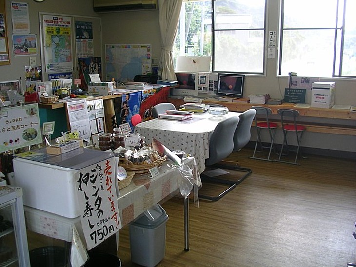 観光案内所の内部。訪問当時は軽い飲物や土産物があり、自由に使えるPCも備えていた。