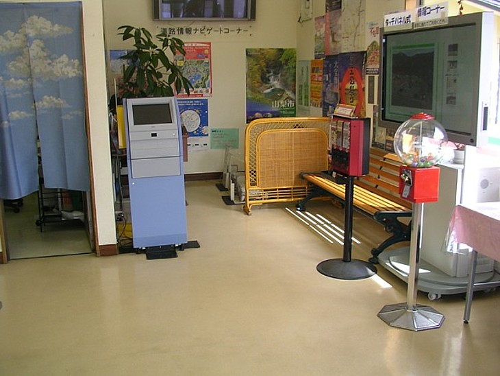 右隅の情報コーナーは狭い。奥には自由に操作できるナビ設備もあるらしいが、これは未確認。