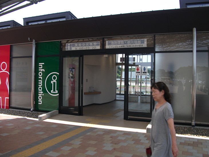 別棟のインフォメーションとトイレ施設。洋式トイレは全てウォシュレットを備えており、管理も行き届いている。