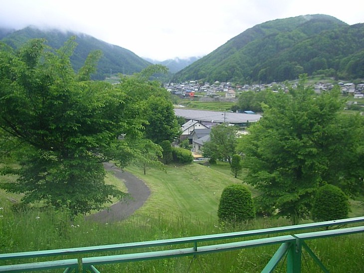 露天風呂はないが展望は悪くない。大きなガラス窓からは遠くに中山道和田宿の家並みが眺められる。