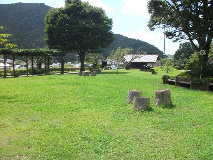 敷地には緑がいっぱい!那賀川に沿って静かな散歩道もあり、4月には桜並木や大規模な花畑が楽しめる。
