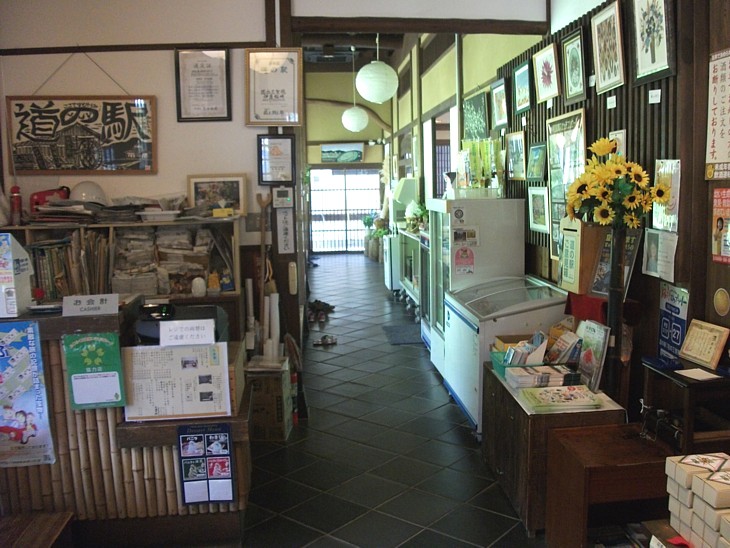 狭い売場には農産加工品などの物産が並ぶ。全国で桜餅などに使う葉の七割は松崎産らしい。