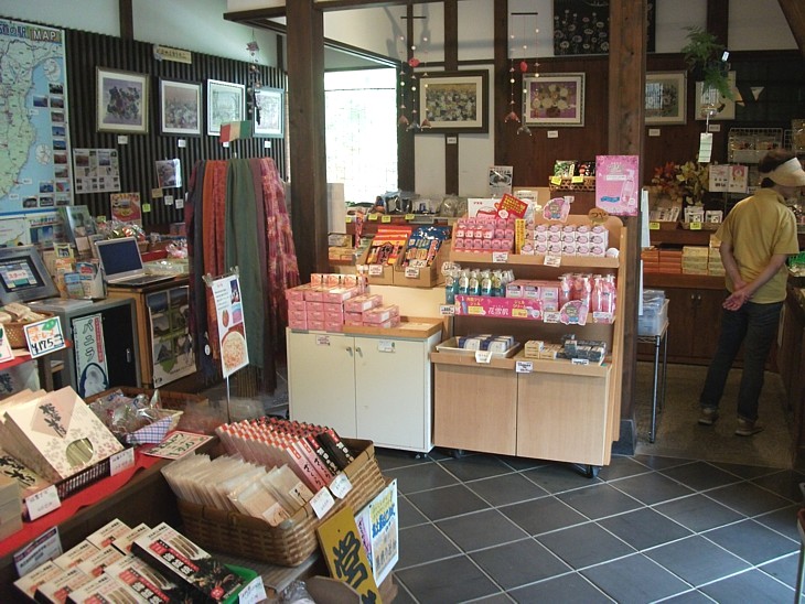 様々な地元の菓子類や土産物・飾り物が混在して雑多な雰囲気。ちなみに那賀川の鮎は結構有名だ。