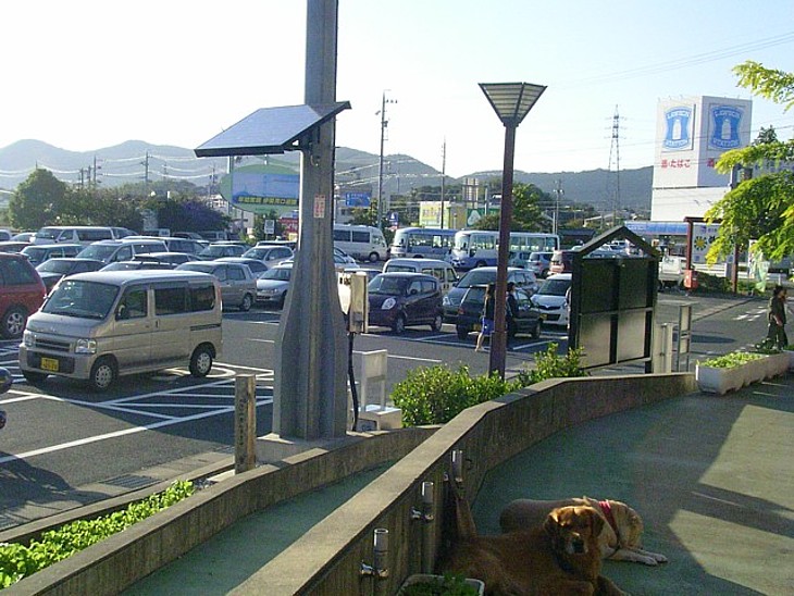 駐車場から緩いスロープで入口へ。建物の反対側と裏の駐車場側にも出入り口があり、三方から入れる。
