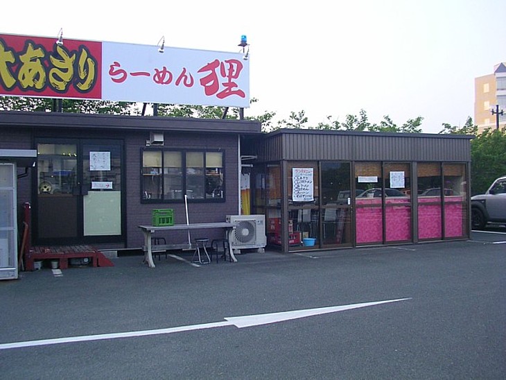 駐車場のプレハブ型食堂「狸」。雰囲気が良くないが、大あさりを使ったメニューは食べる値打ちあり。
