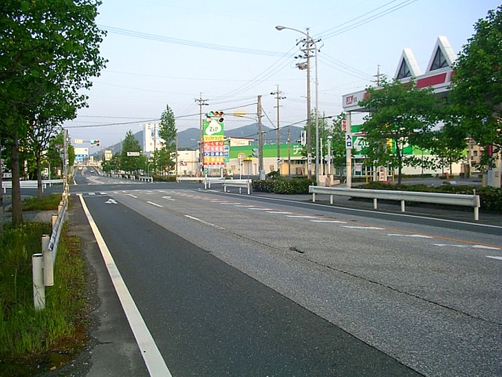 国道259号の交差点。周辺は田原市中心の商業集積でやや騒音はあるが、買物などの不便は全く感じない。