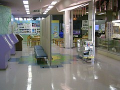 9〜19時・情報提供を兼ねた広い休憩施設は機能も充実しているが人通りが多く飲食には向かない。 | |